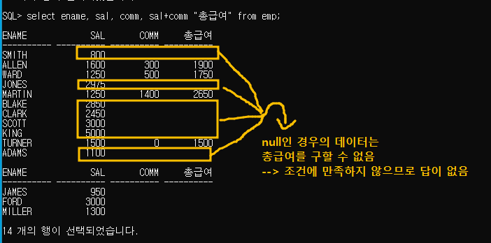 null인 경우, 데이터 연산에 결과값 추출이 제외되서 나오므로 주의필요.