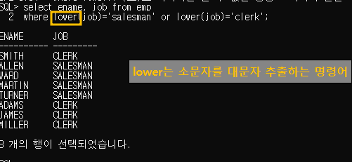 - tip: 오라클은 문자열에 영어는 대문자/소문자 구별됨.