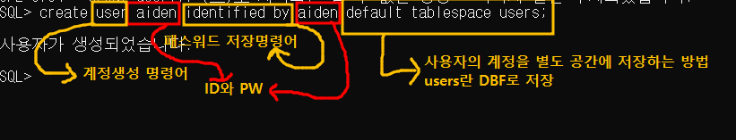 SQL> create user aiden identified by aiden default tablespace users;