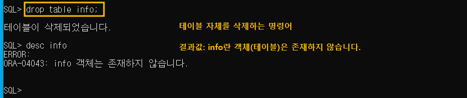 ※ 명령어 사용대상: 객체 ex. 테이블, 유저명, index(문자) ..