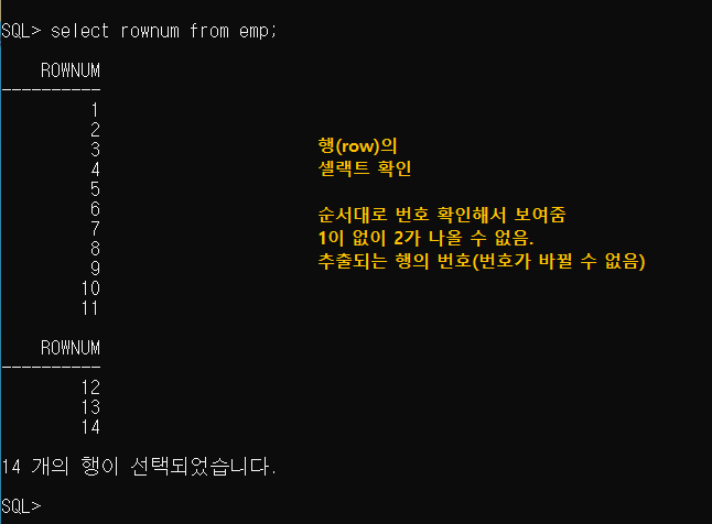 SQL> select rownum from emp;