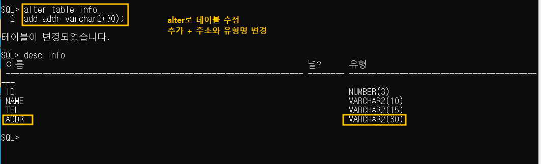 SQL> alter table info