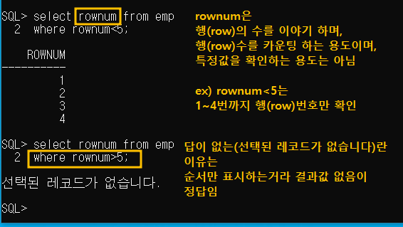 rownum는 특정값으로 확인되는 데이터가 아님