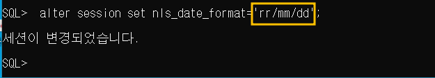 SQL> alter session set nls_date_format='yyyy.mm.dd hh24:mi:ss'; // 변수=값