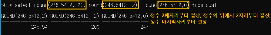 2. 반올림: trunc는 자리수 지정한 이하 버림