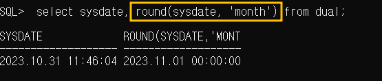 SQL> select sysdate, round(sysdate, 'month') from dual;