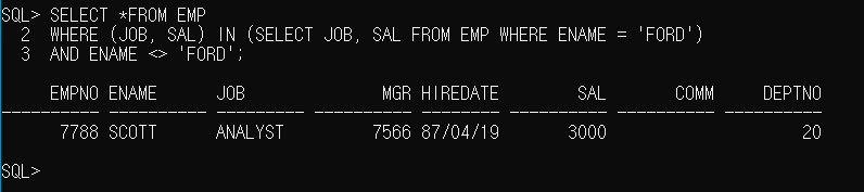 where (job, sal) in (select job, sal from emp where ename='FORD');