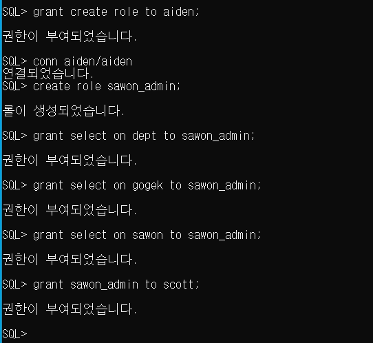 - 롤을 사용하면 권한 유지보수, 관리가 쉽다! --> 직무변경 등 권한관리 유용.
