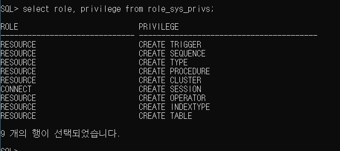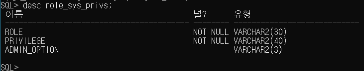 - role_sys_privs: 현재 세션의 시스템 롤 권한 정보