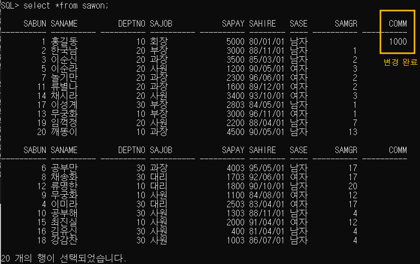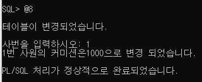 사번을 입력받은 직원의 커미션을 모두 업데이트 하세요.