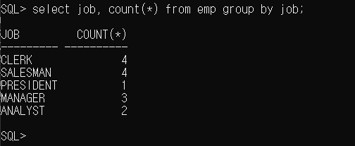 SQL> select job, count(*) from emp group by job;