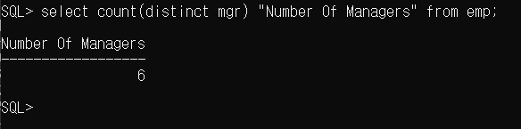SQL> select count(distinct mgr) "Number Of Managers" from emp;