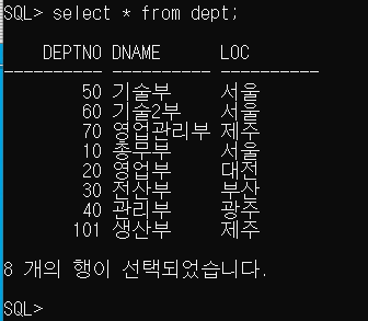 --테이블내의 모든행을 삭제하는 경우(DDL명령)