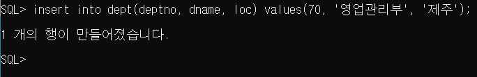 - insert into table_name(컬럼명,...) values(값,...); // 선택 컬럼값을 가진 입력***