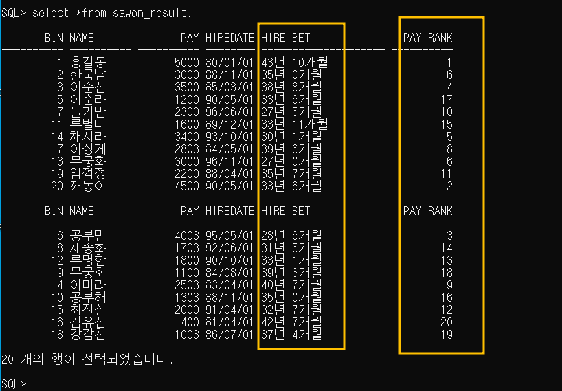 insert into sawon_result(bun, name, pay, hiredate, pay_rank, hire_bet)