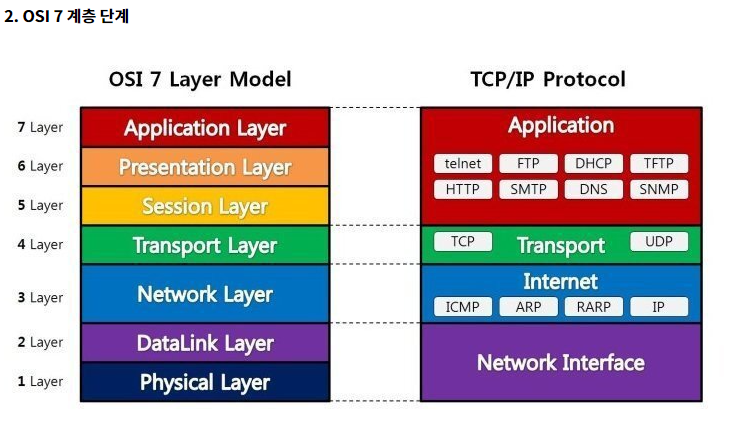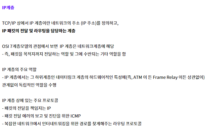 - TCP / IP : (7계층 中, 4계층/3계층 구조) // 글로벌한 정보 사용가능(전세계와 소통할 수 있는 통신망)