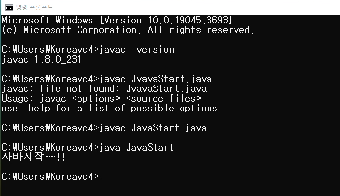 c: WUsersWKoreavc4 > javac JavaStart.java