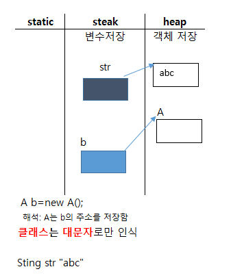 ※ java는 실제메모리인 heap에 저장할 수 없으므로 stack에 저장함