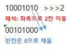 <<< 숫자 , >>> 숫자는 숫자만큼 좌측으로 이동하라는 연산자