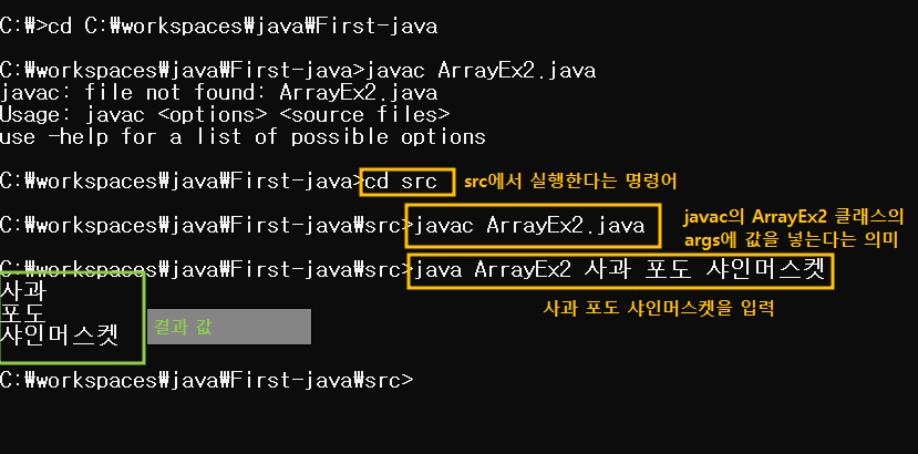 배열은 args를 선언해도 답을 구할 수 있다.