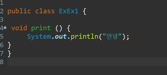 - void : 별도로 return 값 없이 메소드를 실행하고 끝난다는 의미