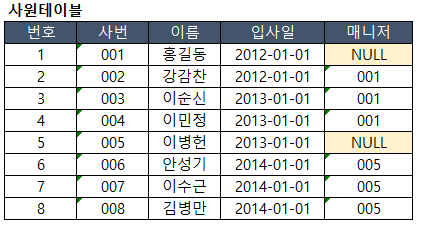 정답: 계층구조상 최상위 매니저는 모두 출력되야 됨