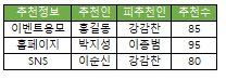from (select 추천경로, 추천인, 피추천인, 추천점수,