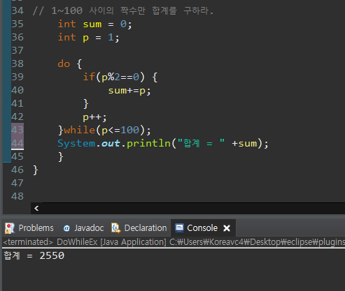 ** DoWhile 반복문(적어도 1번은 실행한다) --> 게임은 대부분 dowhile로 짠다.